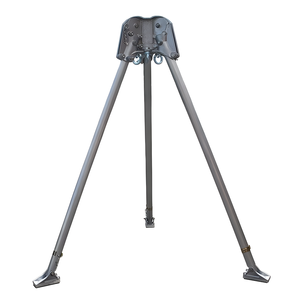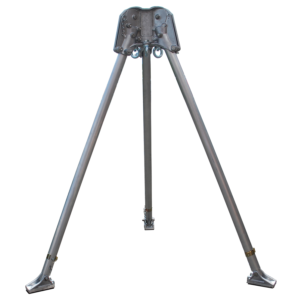 The T3 Two-Person Tripod offers adjustable leg span and height for optimal stability in confined space operations. Equipped with overhead pulleys accommodating up to 11mm ropes and fixed eyebolts for secure attachments. Ideal for use with winches and fall arrest devices in industrial scenarios.